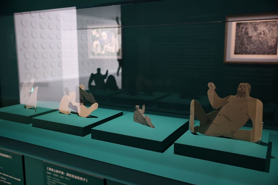值得一提的是,踏入“草地上的午餐”展厅,观众脚下的触感从坚硬的地板过渡为柔软的仿真草皮。这是保罗·史密斯为营造沉浸式体验埋下的一个巧思。展厅名称源于毕加索对马奈同名经典的反复演绎,以此为主题,他创作了诸多变体作品,贯穿不同时期。展柜中陈列的纸板雕塑《草地上的午餐:撑肘而坐的男子》,以轻松即兴的拼贴手法,重构了画中的经典人物。