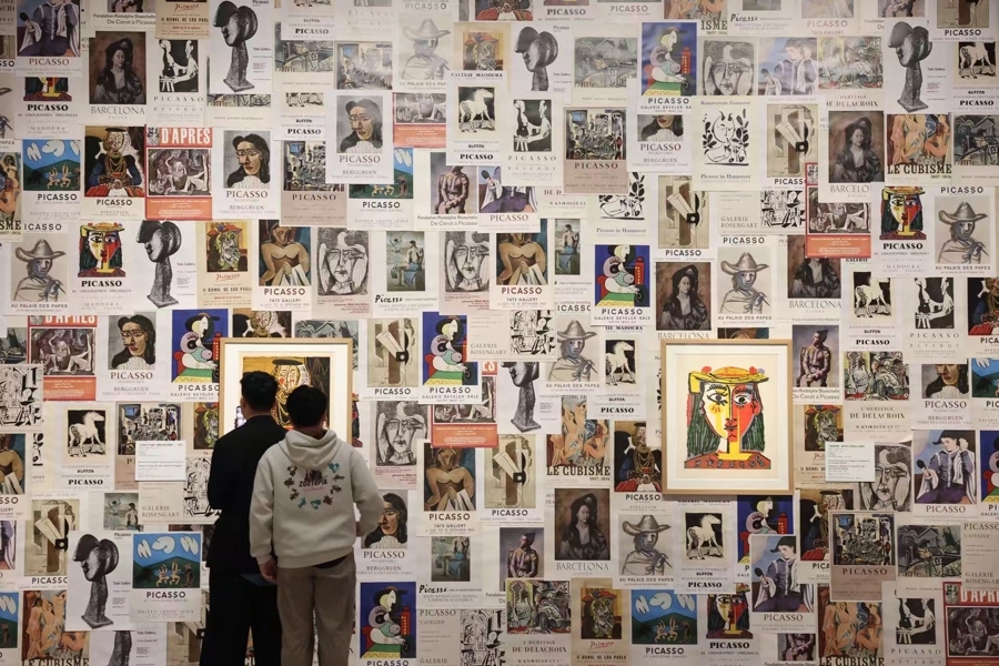 “策展过程中,我意识到毕加索非常乐于从不同事物处汲取灵感。”保罗·史密斯感慨,“这种创作的开放性,我十分欣赏。”因此,他将展览的最后一个展区,设计成了一个“海报展厅”。墙面层层叠叠贴满了过往毕加索展览的旧海报,新的作品则直接“裱”在旧海报之上。这模仿的是欧洲街头常见的“fly-posting”。“有点像‘城市牛皮癣’,但我相信这种形式很对毕加索的胃口,”保罗·史密斯笑着说,“它自由、奔放,充满了街头生命的活力。”
