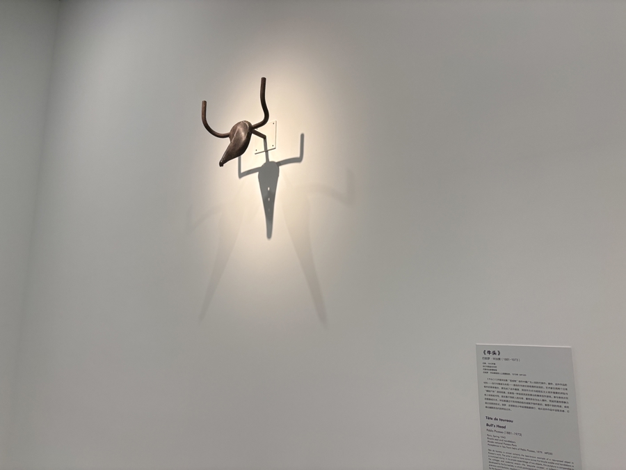 步入展厅,首先映入眼帘的是悬挂在展墙的牛头,这件由自行车鞍座和车把拼合而成的雕塑,创作于1942年,这是《牛头》首次来华展出。可以说,它是毕加索“现成物”创作中最广为人知的代表作。与之相邻的,是几乎占据整面展墙的自行车座与车把,“保罗·史密斯用一种非常幽默的方式,与毕加索的《牛头》形成呼应。”策展人乔安·斯奈什说。