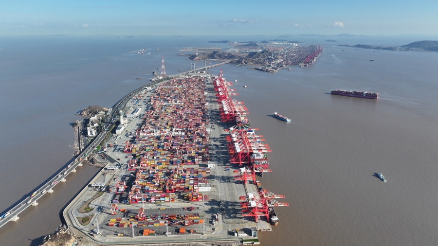 新民晚报记者从上海洋山港海事局获悉,2025年,上海洋山深水港集装箱吞吐量突破2870.6万标准箱,同比增长10.38%,在上海港的占比从2024年的50.5%进一步提升至52.2%,再次刷新历史纪录,巩固了其作为世界顶级集装箱枢纽港的地位。这一亮眼成绩单的背后,是一系列管理创新和智能化手段带来的港口运营效率新飞跃——洋山港已连续三年(2022-2024年,2025年数据暂未发布)斩获全球港口效率排名第一(CPPI)。