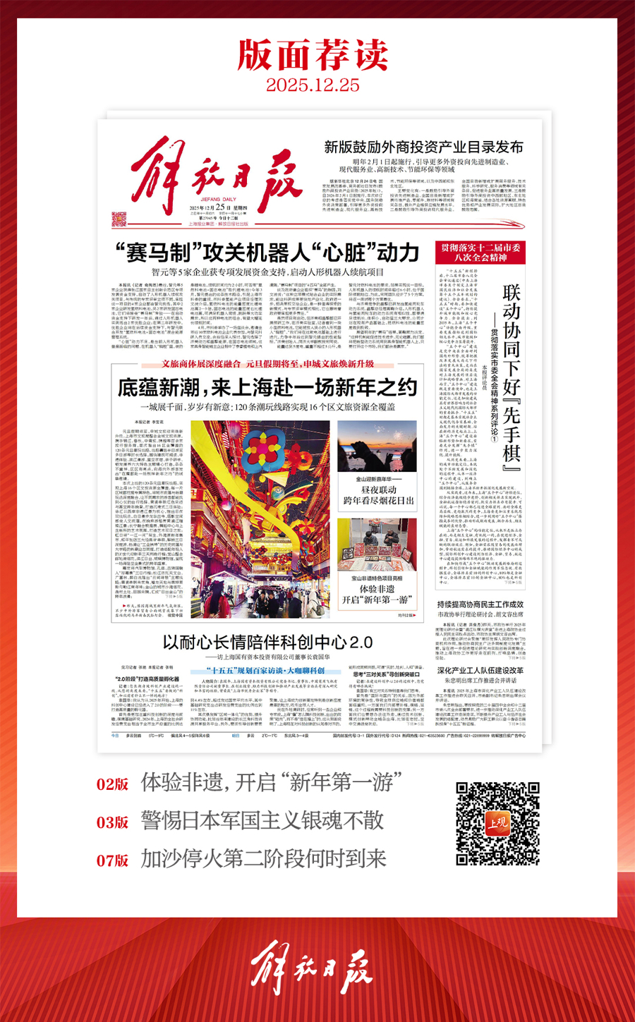 早上好!上观新闻『早读』来啦!2025年12月25日 星期四 农历十一月初六上海多云到晴,5~9℃