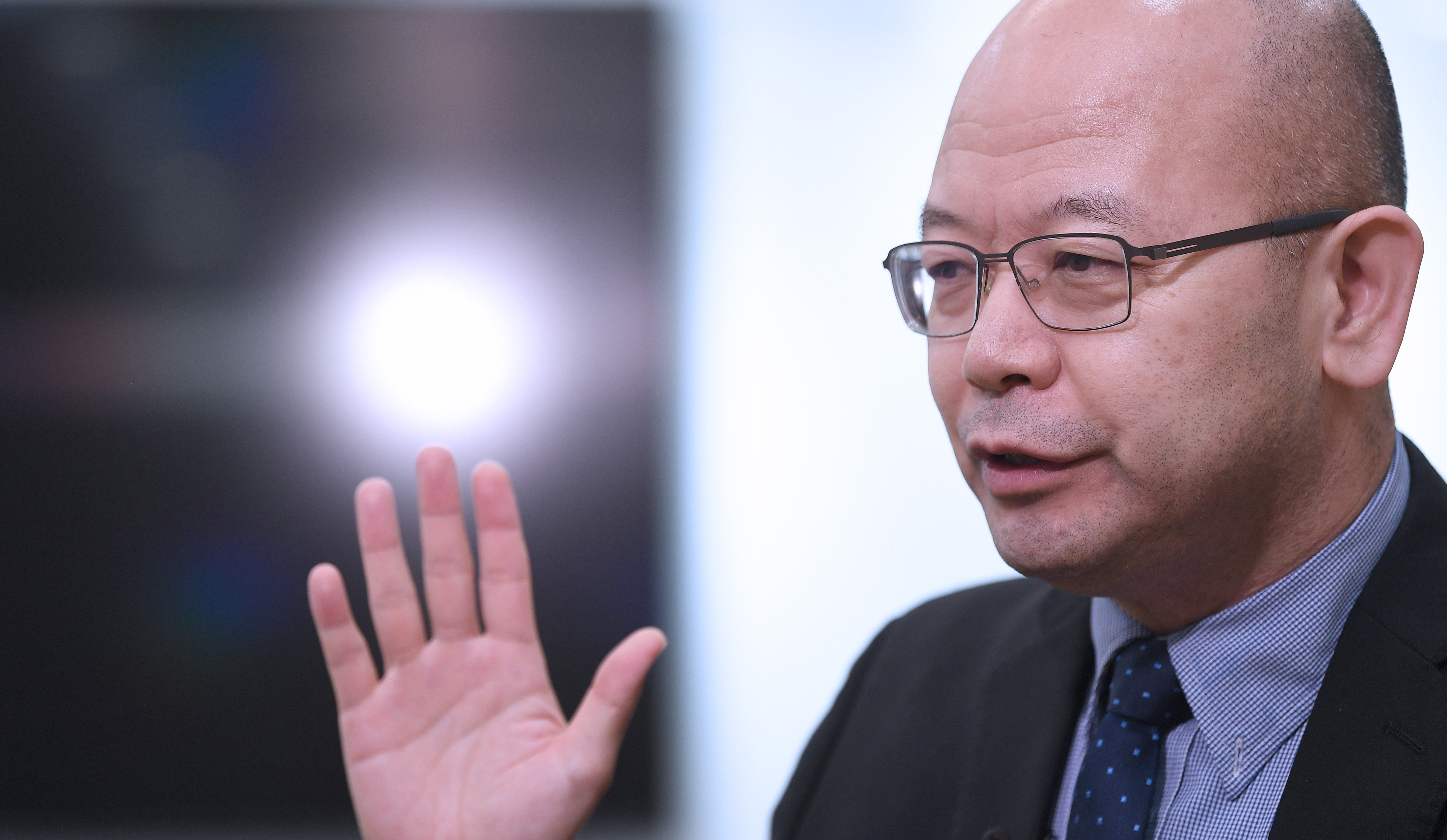 6月11日,香港太空机械人与能源中心联合主任于宏宇教授接受记者采访。新华社记者 陈铎 摄